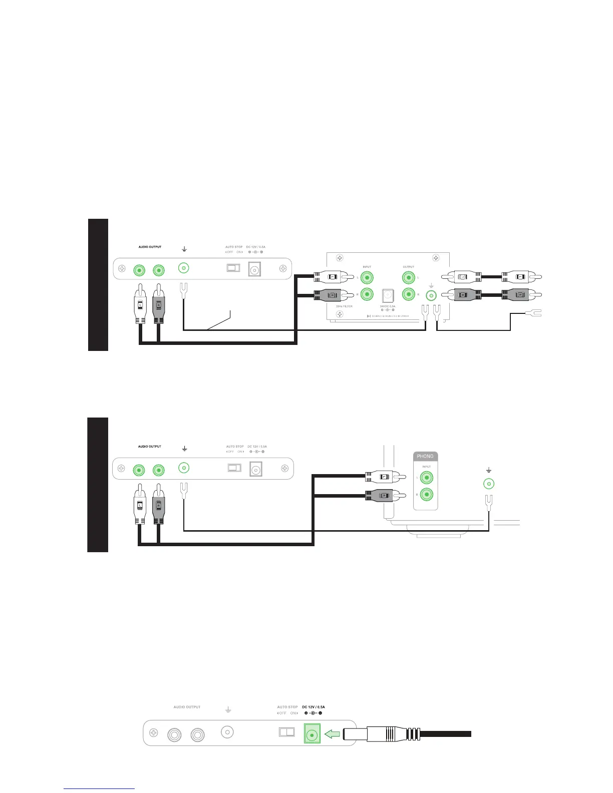 Important: The ground cable must be connected to both turntable and amplier. Failure to connect to both can result in
