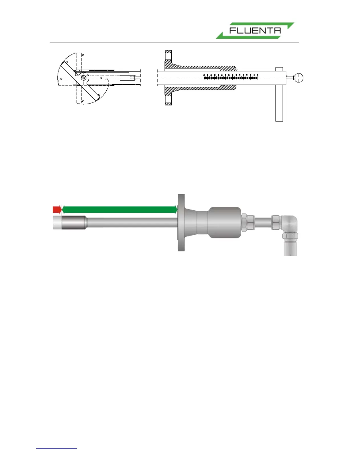 The insertion depth (green arrow) must be reduced (red arrow) according to the angle of the