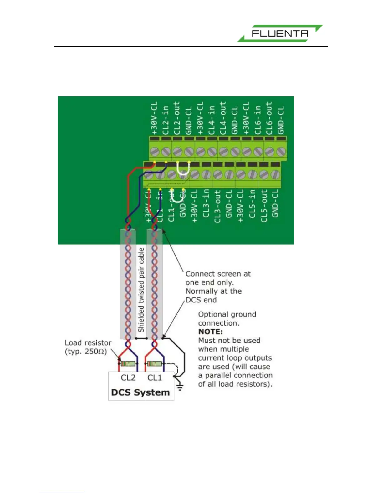 - Current loop is connected between CL+Supply and “CLx in” terminals.