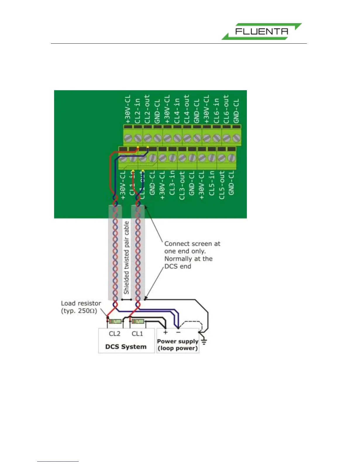 - Current loop is connected between “CLx in” and “CLx out” terminals.