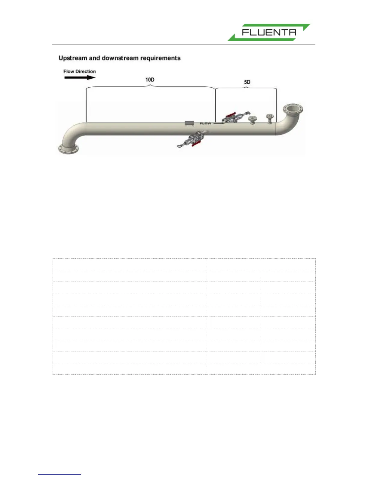 Figure 1: Fluenta’s minimum straight up- and downstream distances to disturbances.