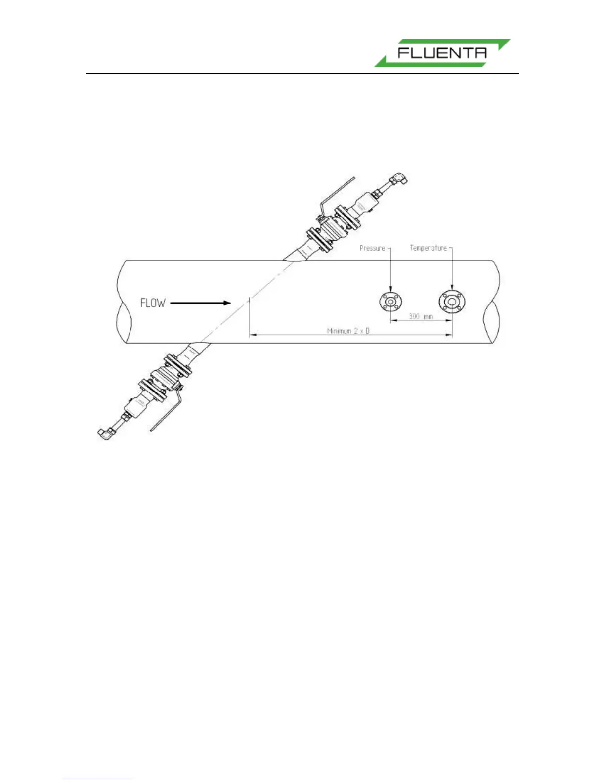 a 90° angle to the transducers if the pipe is vertically oriented. These positions are chosen in