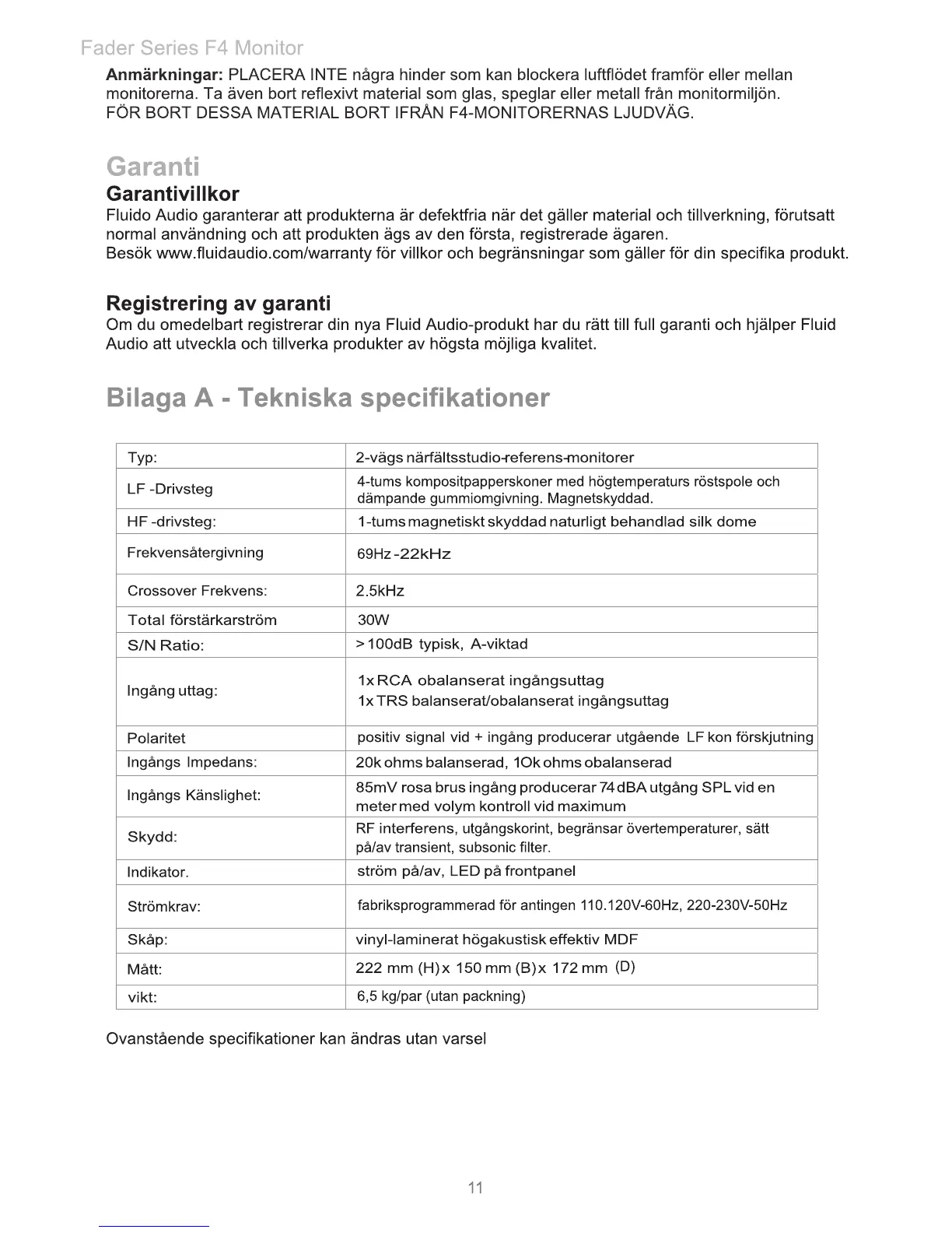 Fluid Audio F4 - Page 12