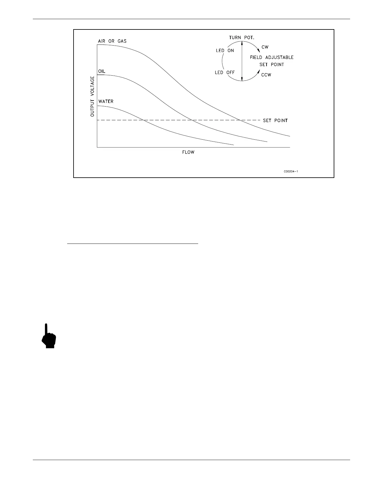 signal is 2.000 volts and the no-flow signal is 5.000 volts, then the calculated set point would be 3.500 volts.)
