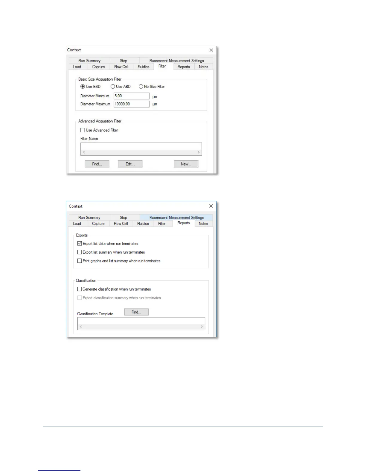 9. The Reports tab provides options for exporting and printing reports when an analysis finishes, as