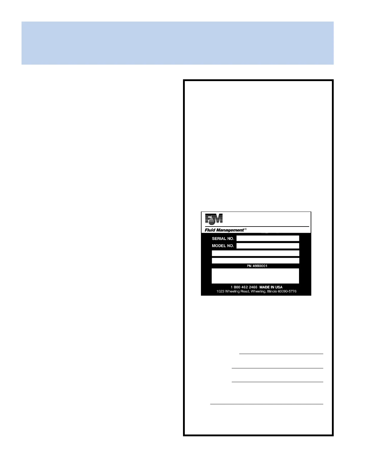 Fluid Management Customer Service 1 . 800 . 462 . 2466