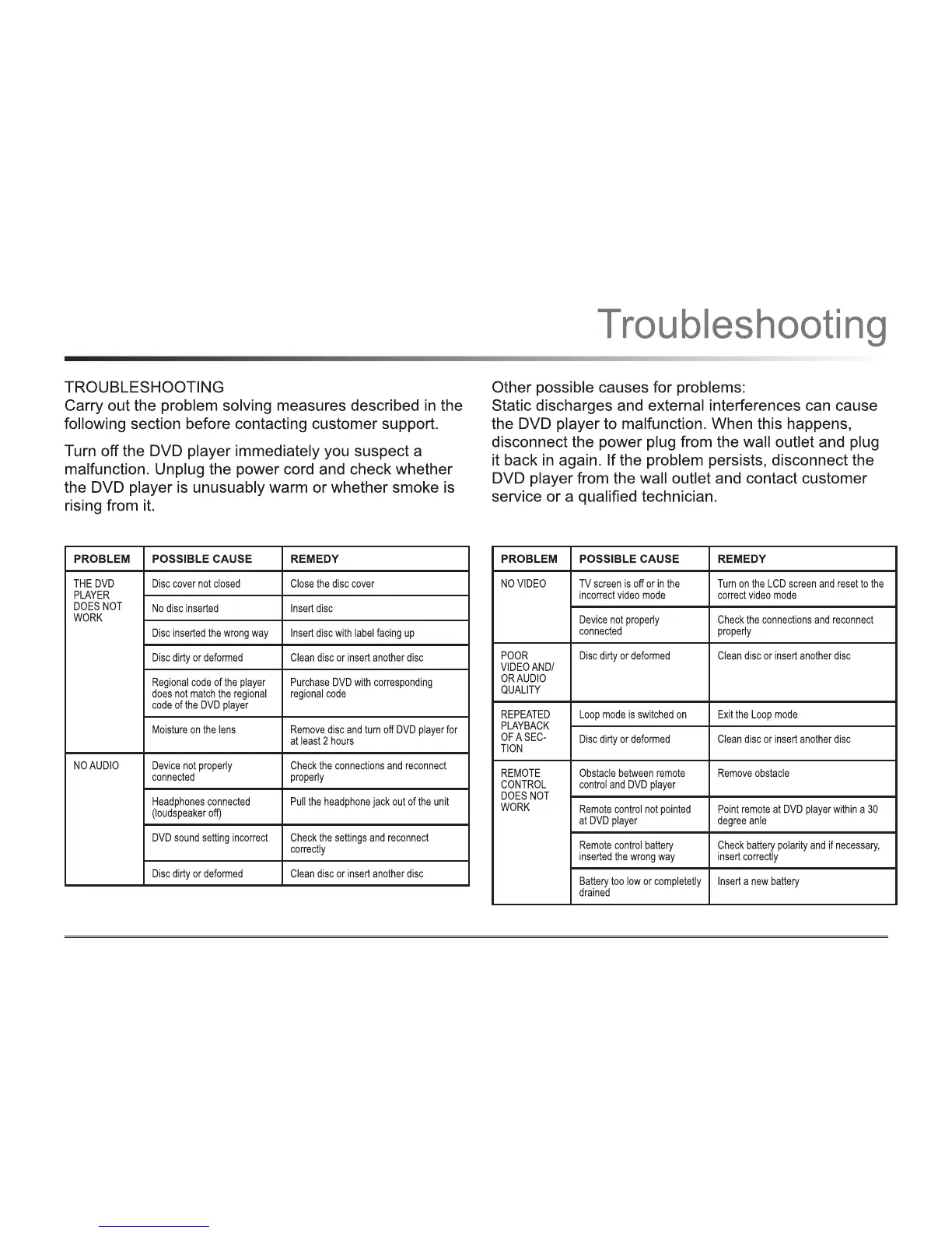 PROBLEM POSSIBLE CAUSE REMEDY