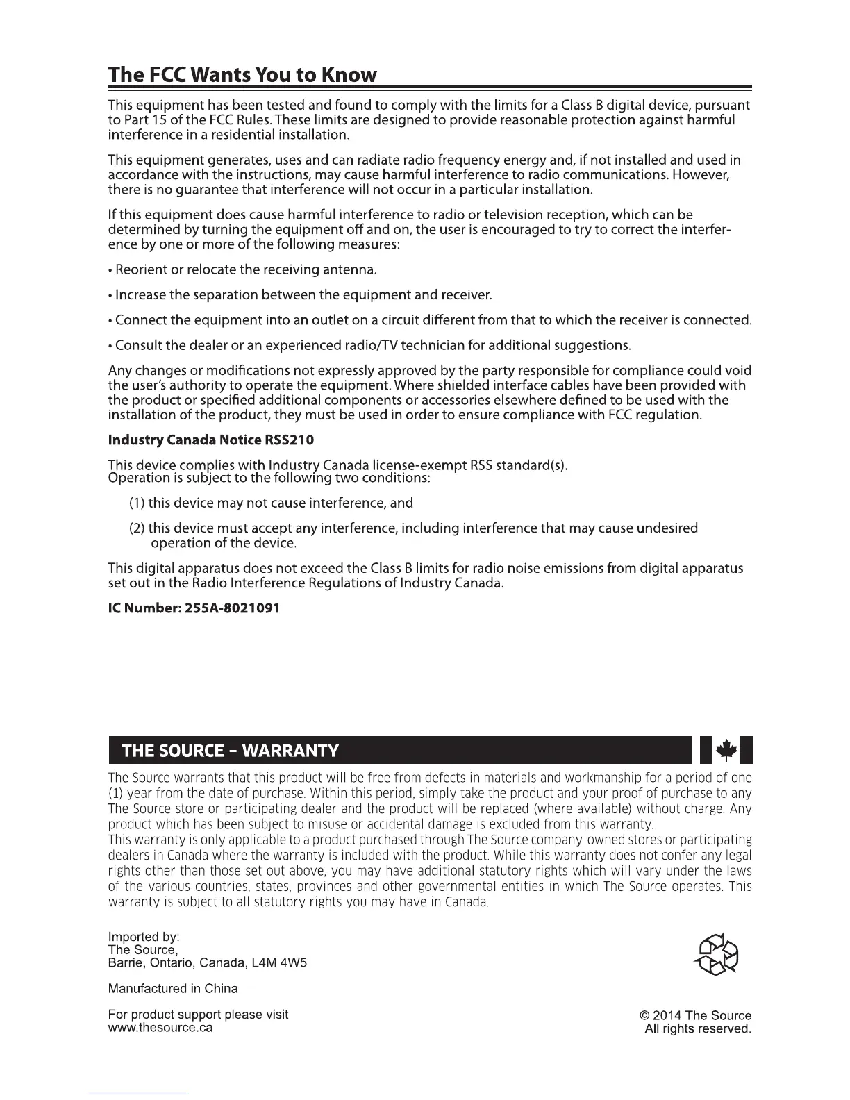 Fluid 8020917 - The FCC Wants You to Know; Warranty