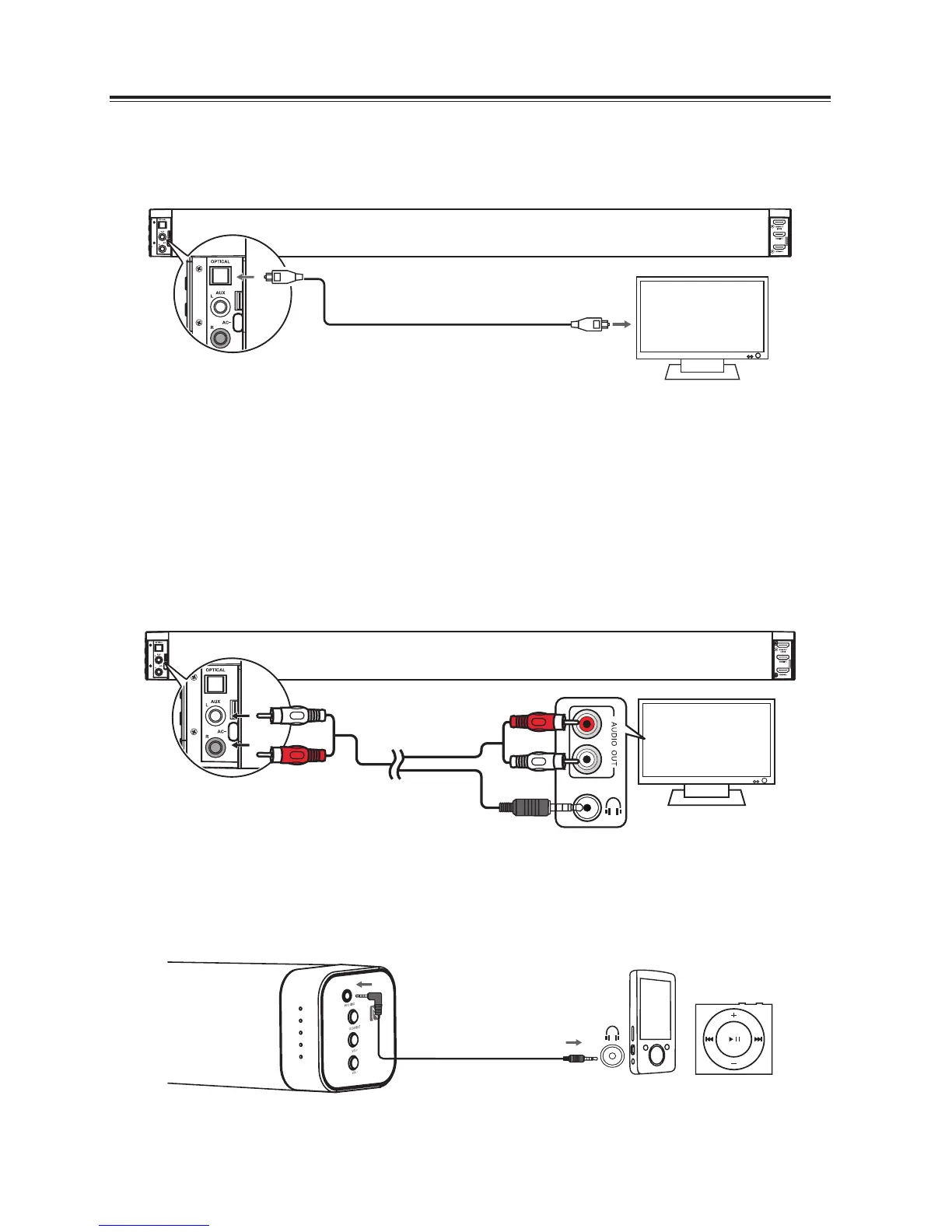 the TV’s OPTICAL OUT socket and the OPTICAL socket on the unit.