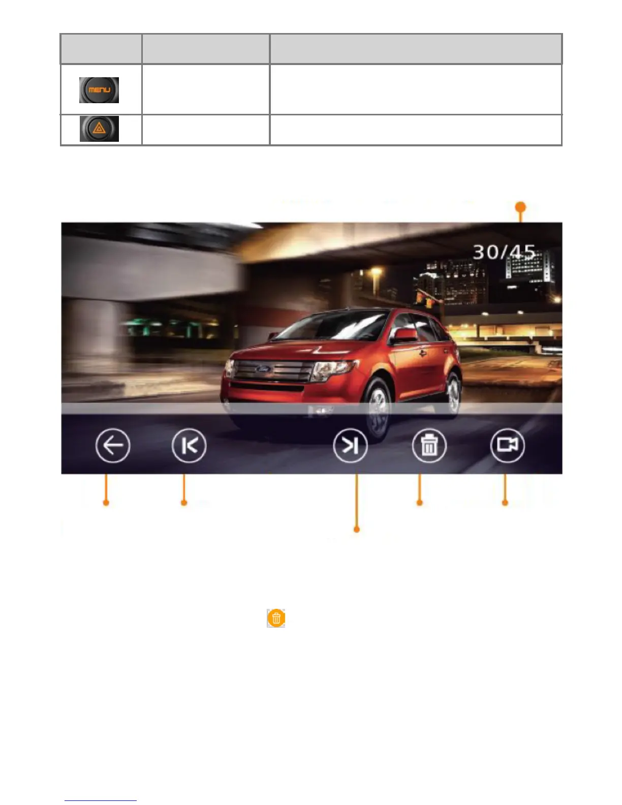 Return Previous video Delete menu Enter recording