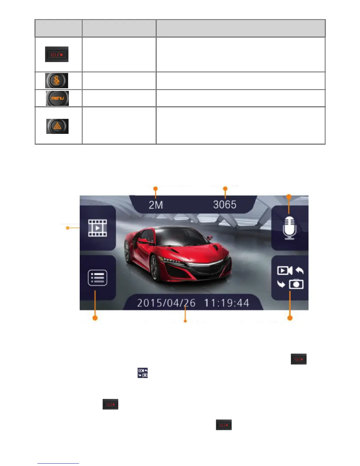 Undertherecordingmode,pressthe“POWER/REC”button to