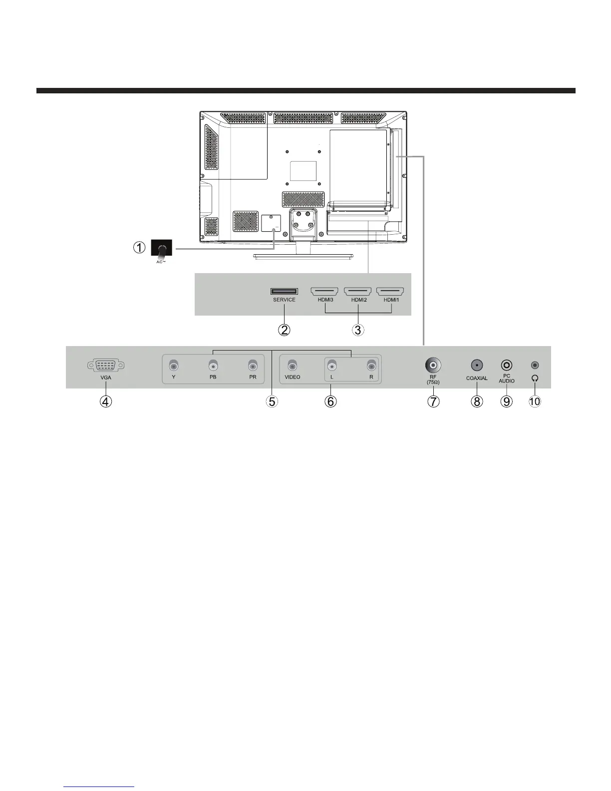 The TV is provided with mounting holes for a VESA approved wall mounting bracket (NOT