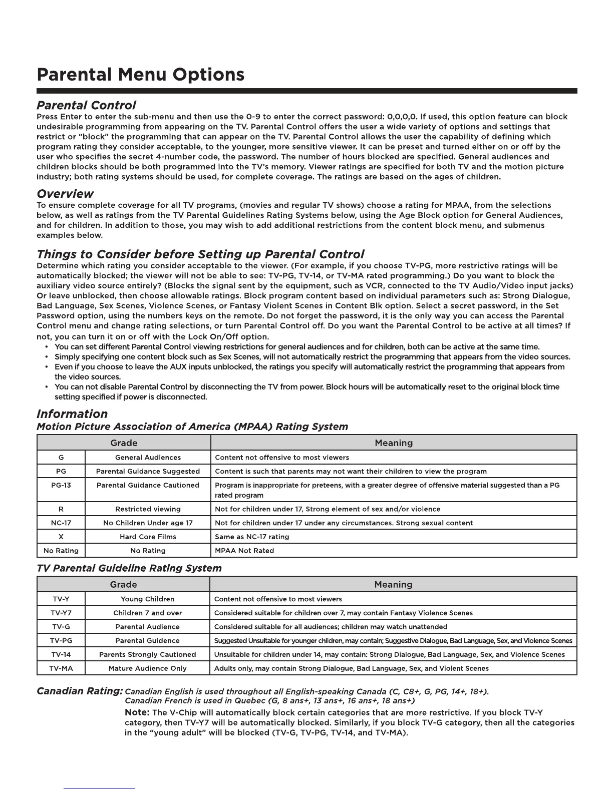 children blocks should be both programmed into the TV’s memory. Viewer ratings are specified for both TV and the motion picture