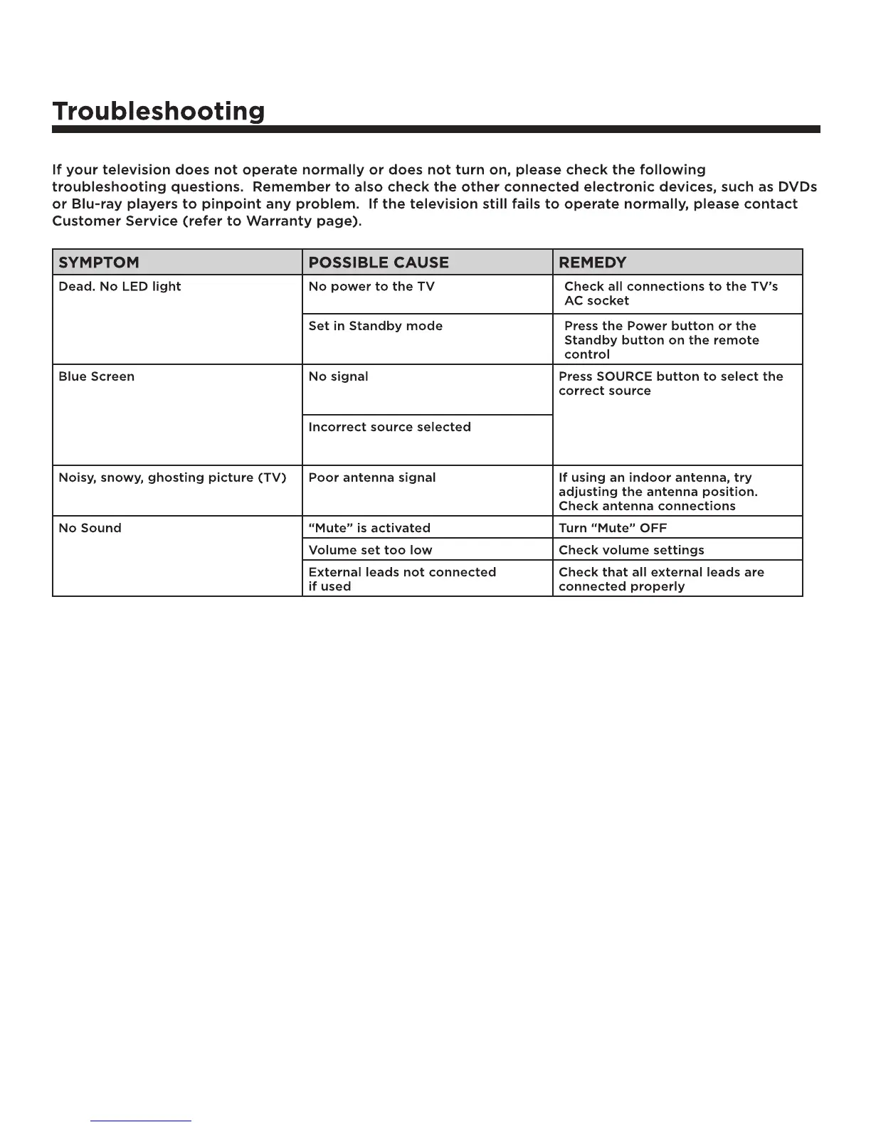 or Blu-ray players to pinpoint any problem. If the television still fails to operate normally, please contact