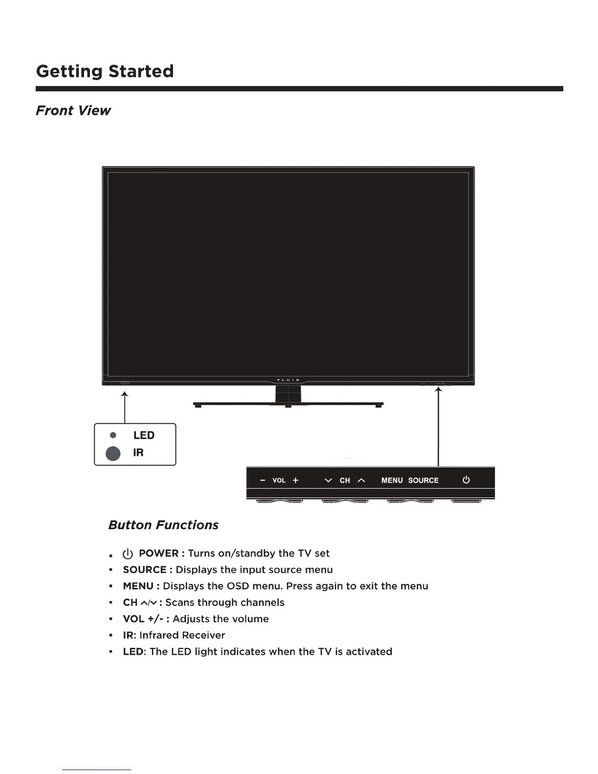 Fluid FLD4800 - Getting Started; Front View; Button Functions
