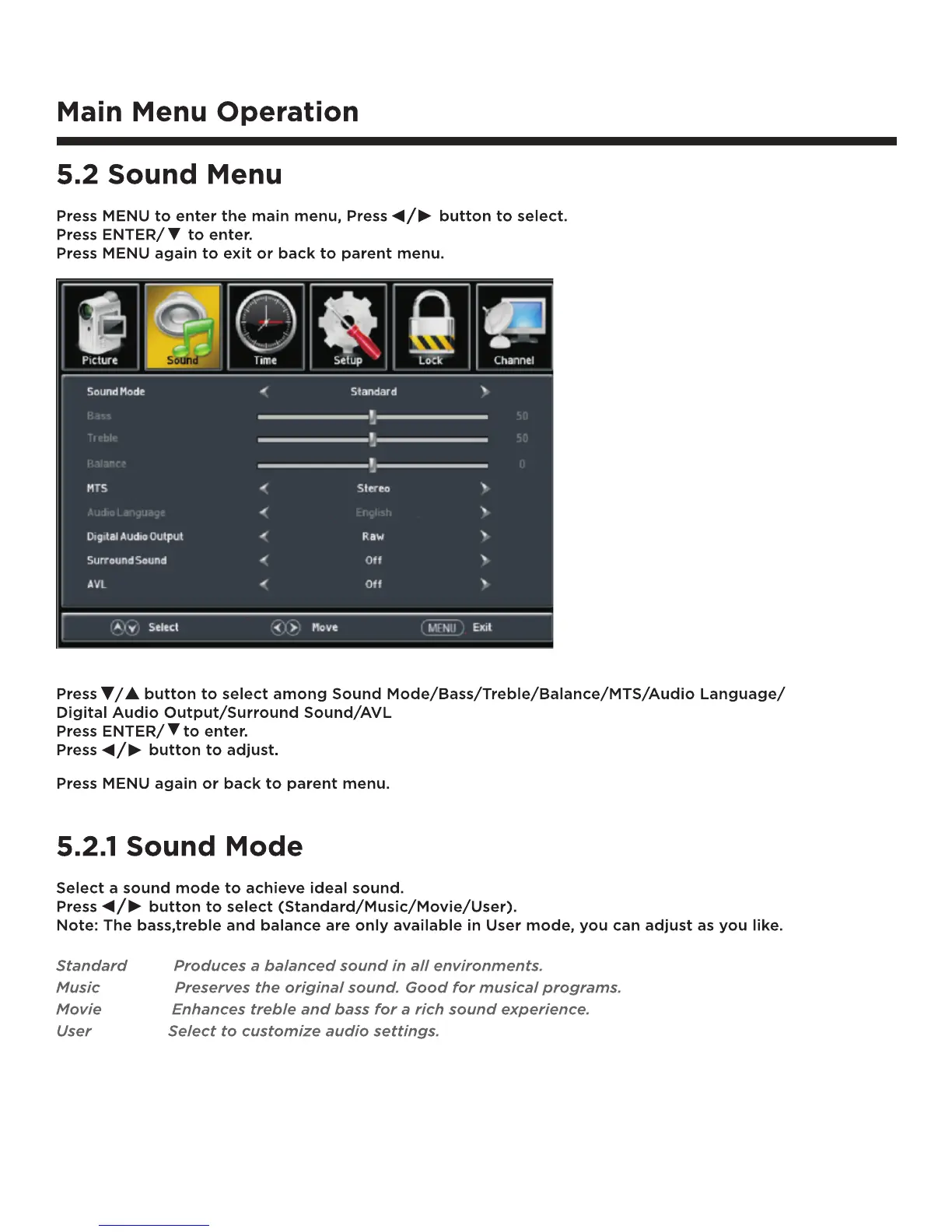 Fluid FLD5501 - Sound Menu Settings; Sound Mode Selection