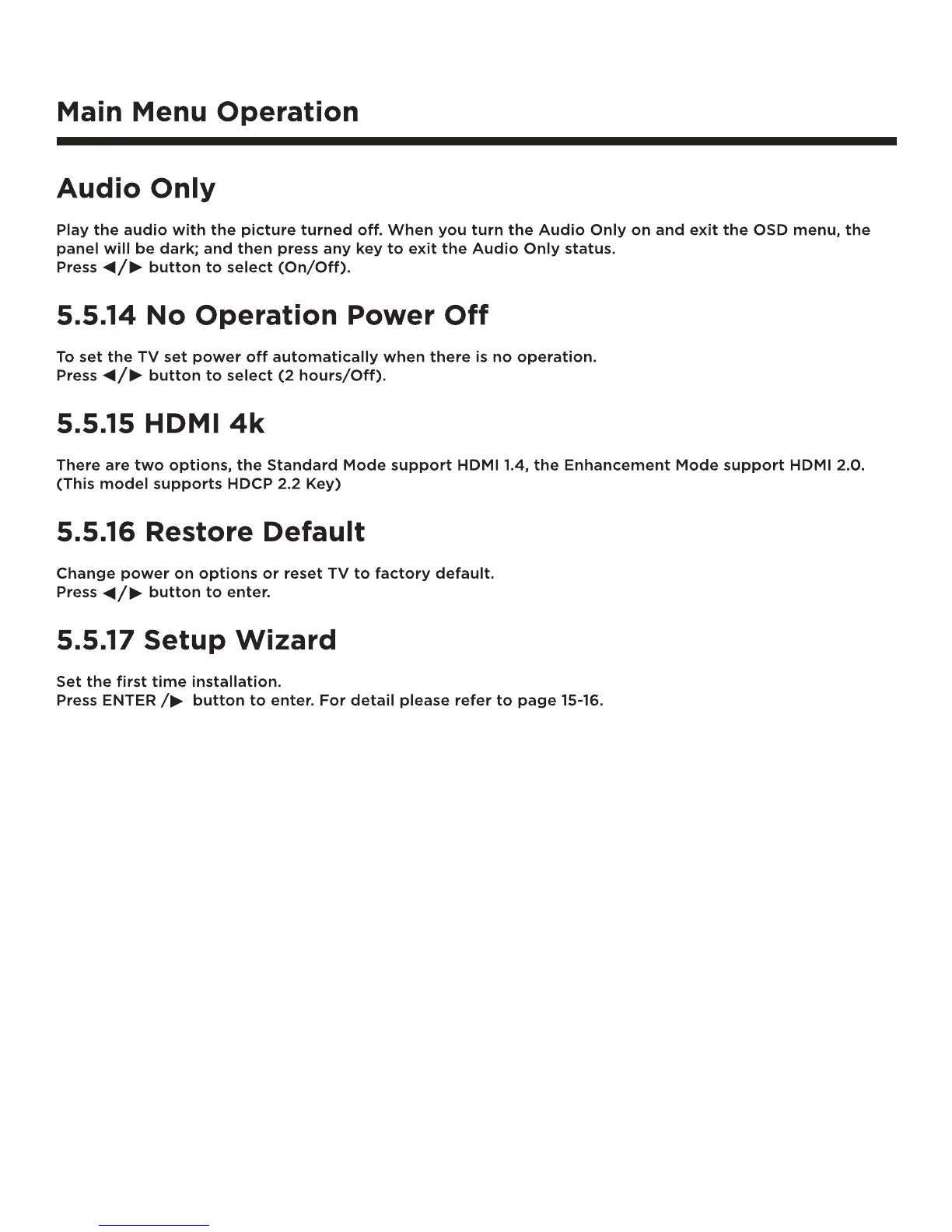 Fluid FLD5501 - Audio Only; No Operation Power off; Hdmi 4 K; Restore Default