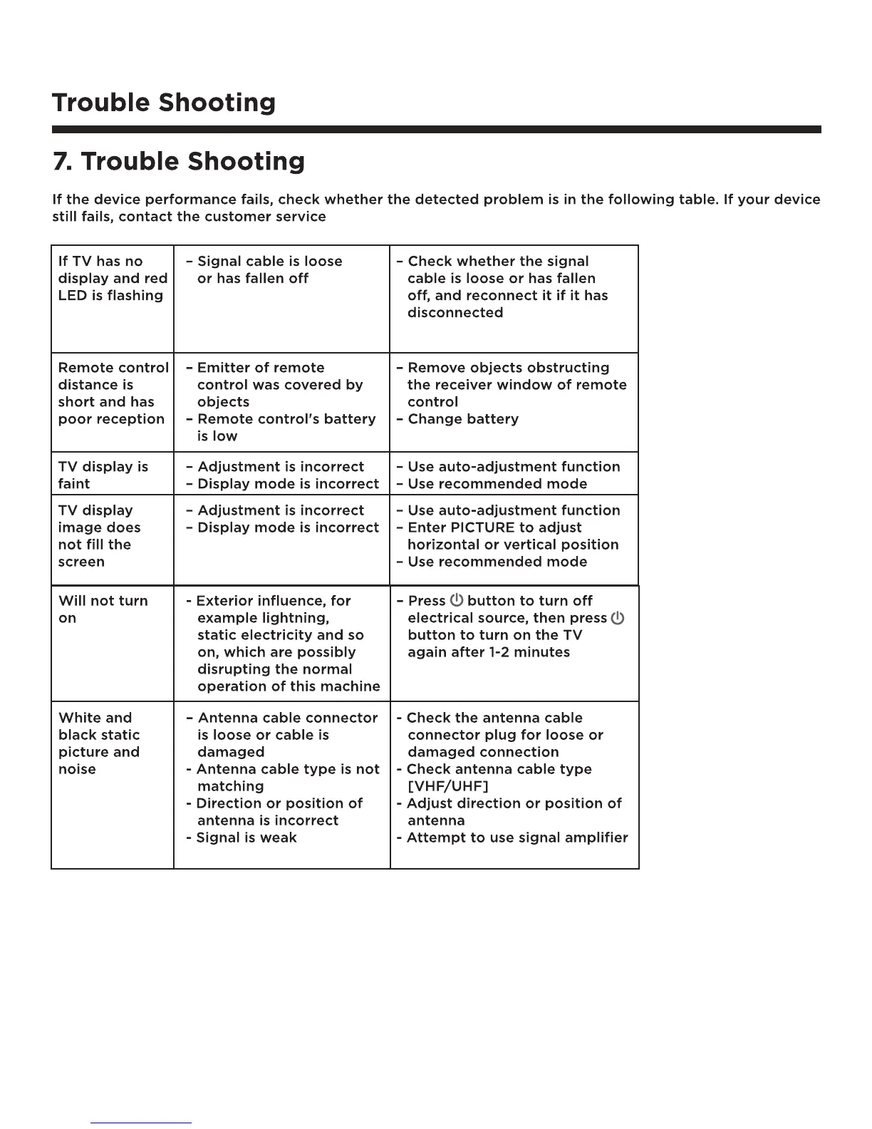 Fluid FLD5501 - Troubleshooting Common Issues; No Display or Flashing LED; Remote Control Performance; Faint TV Display