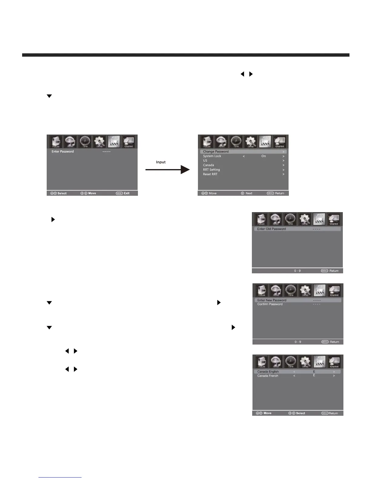 Use the button to go to the “Enter Password” selection and use the numeric buttons to input a 4-digit