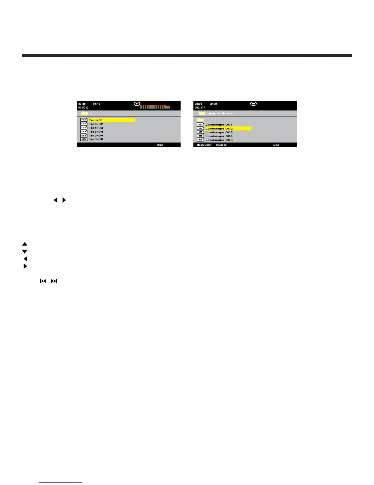 display the MP3 contents automatically and start to play the first file (highlighted file). Screen will show as