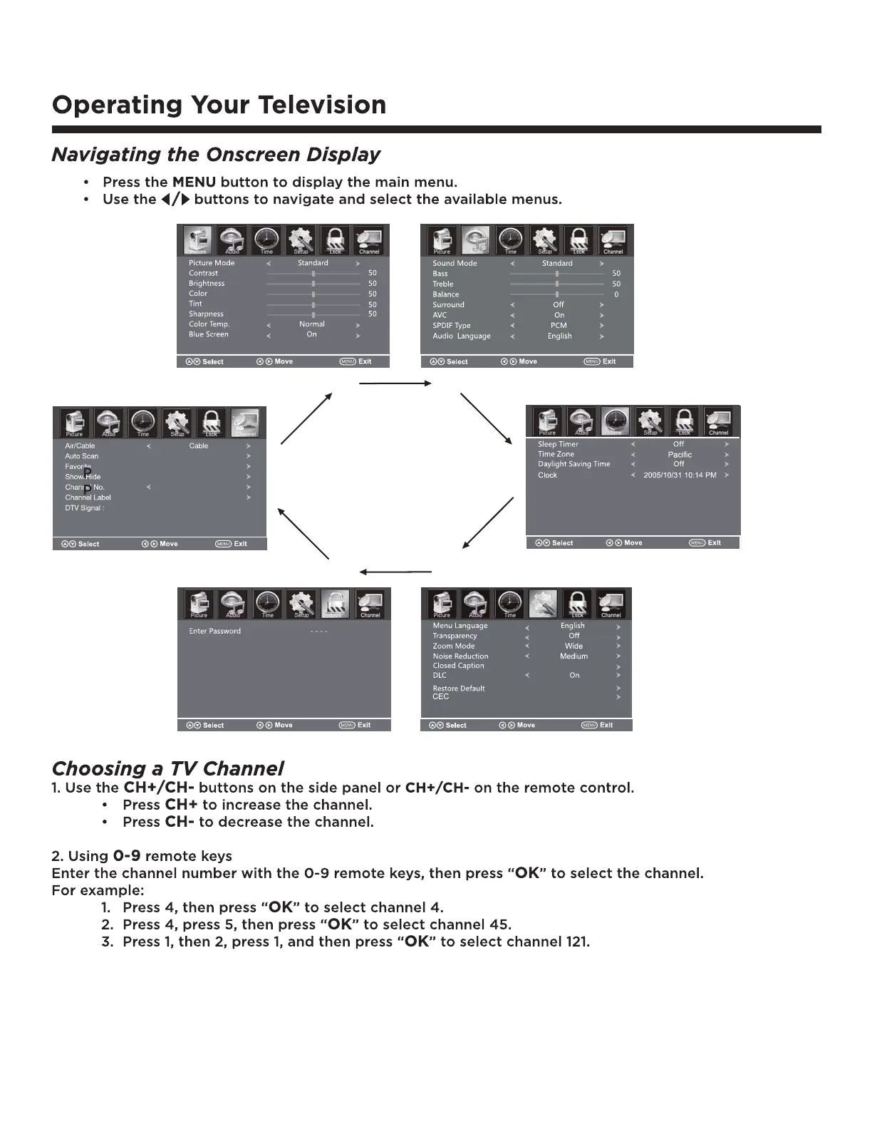 Fluid FLDC2802 - Navigating the Onscreen Display; Choosing a TV Channel