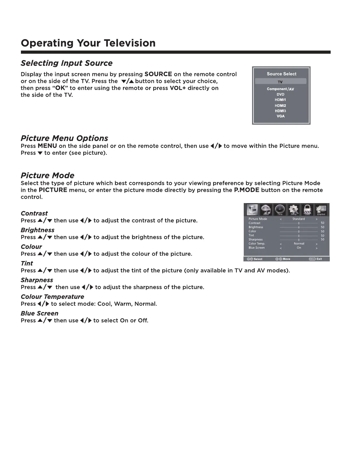 Fluid FLDC2802 - Selecting Input Source; Picture Menu Options; Picture Mode