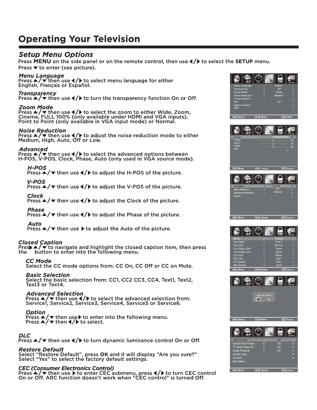 Fluid FLDC2802 - Setup Menu Options