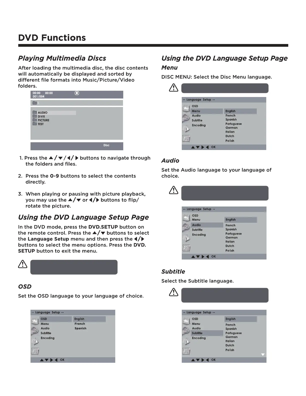 Fluid FLDC2802 - Playing Multimedia Discs; Using the DVD Language Setup Page