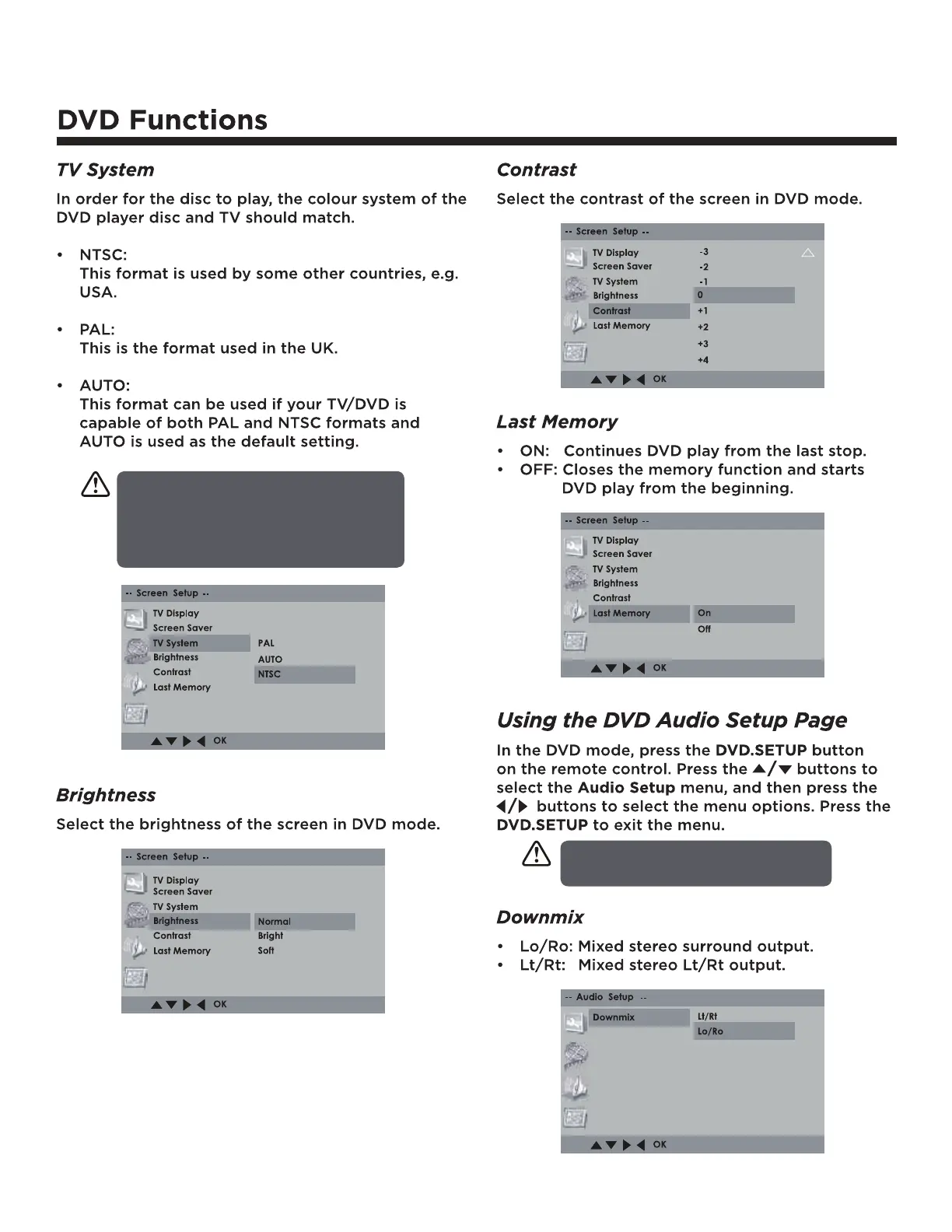 Fluid FLDC2802 - TV System; Using the DVD Audio Setup Page