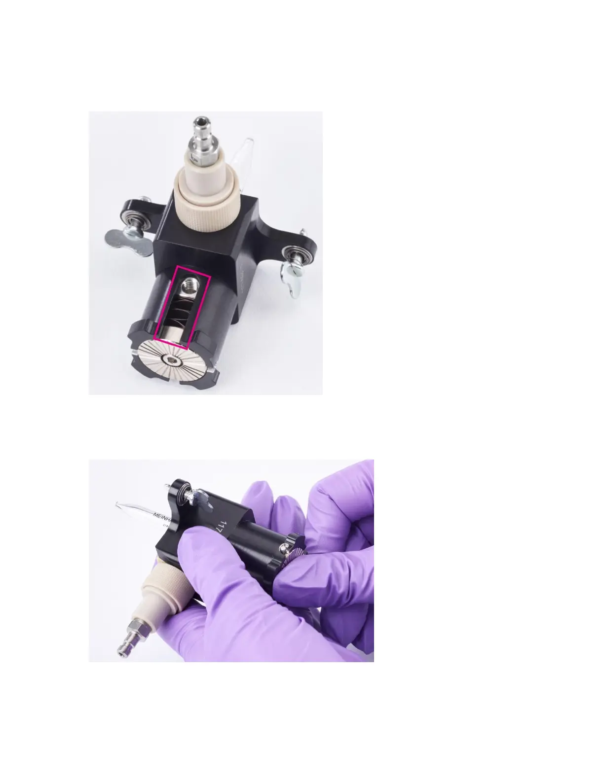 10 Insert the spring assembly into the nebulizer mount and secure it by engaging both pins