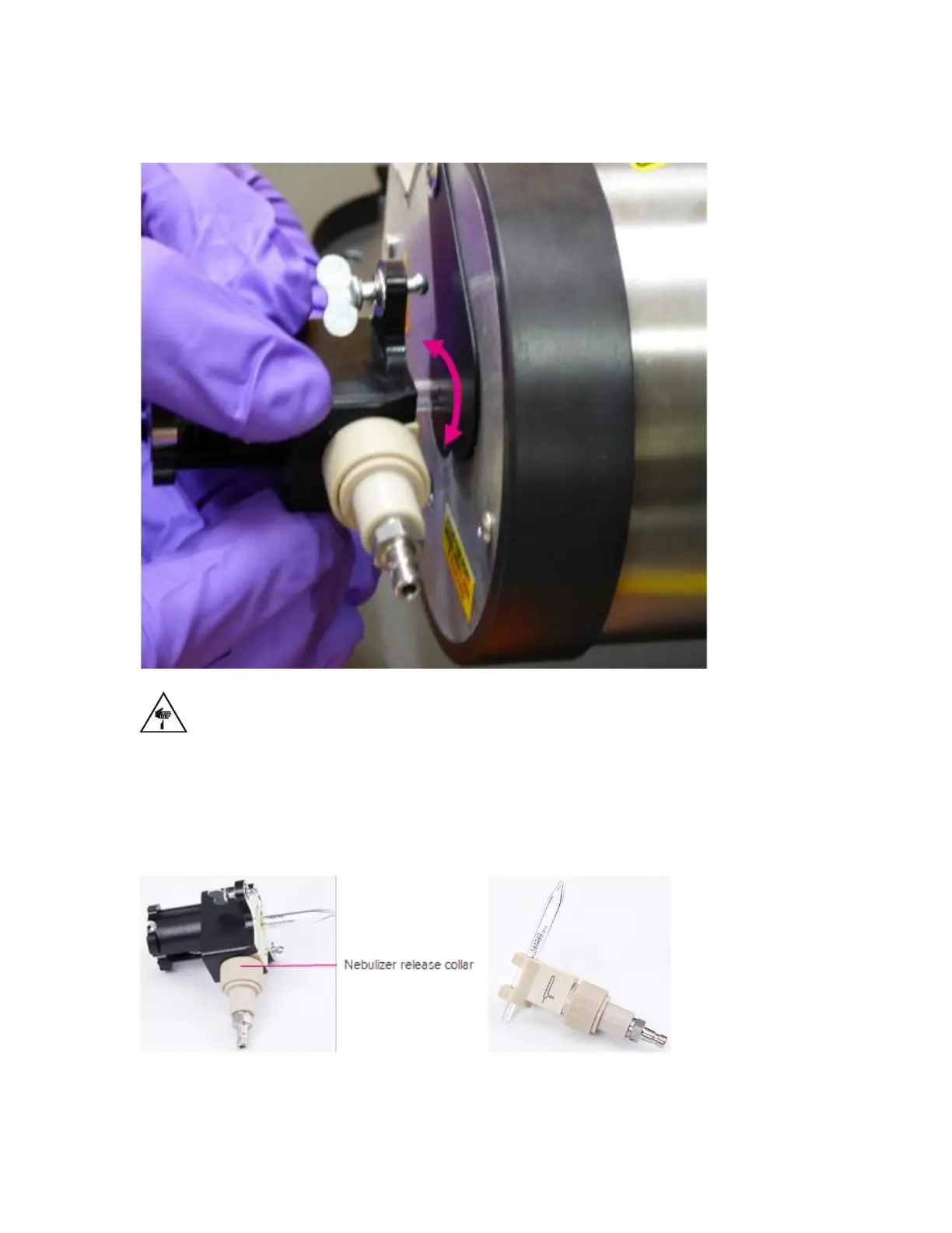 6 Pull the nebulizer release collar away from the nebulizer to remove the nebulizer holder