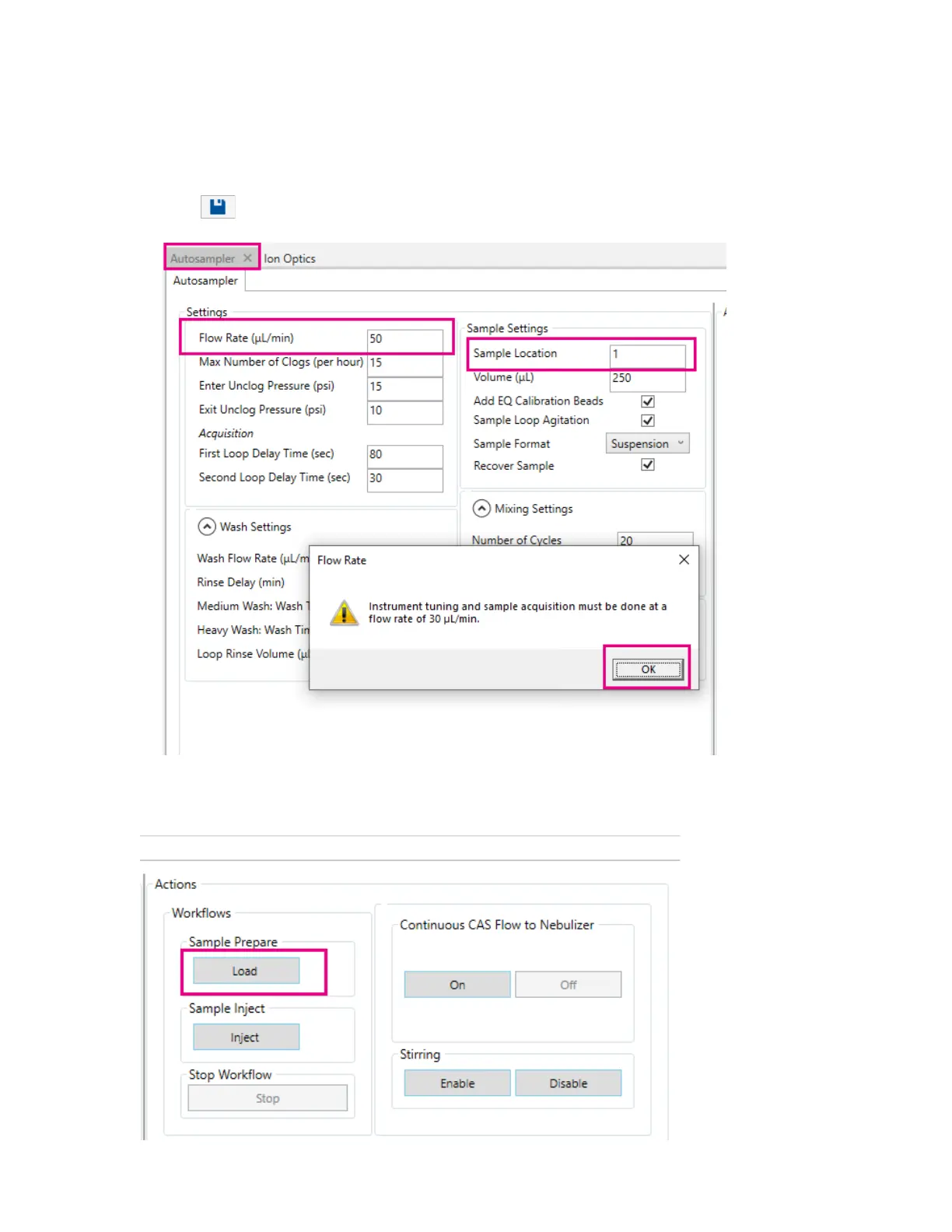 b Under Settings, set Flow Rate (µL/min) to 50.
