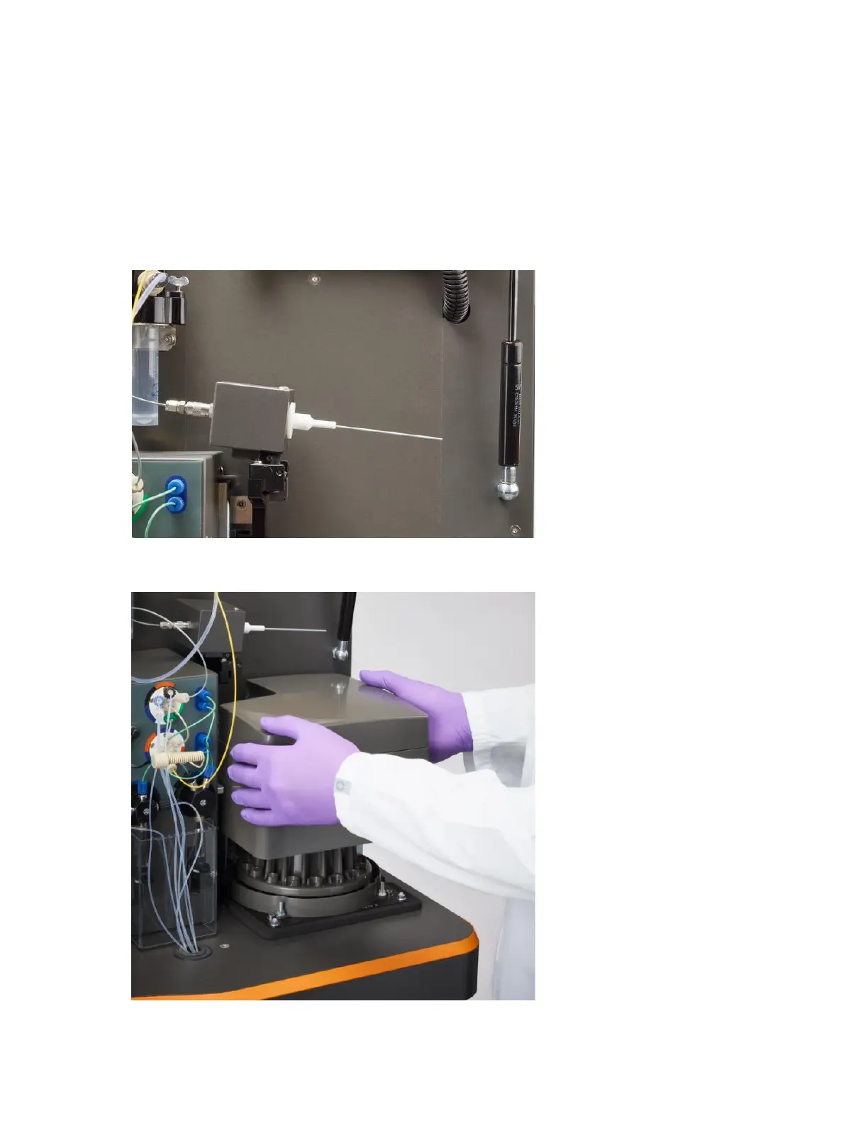 1 Tilt the probe line stir assembly from its vertical position over the carousel to its