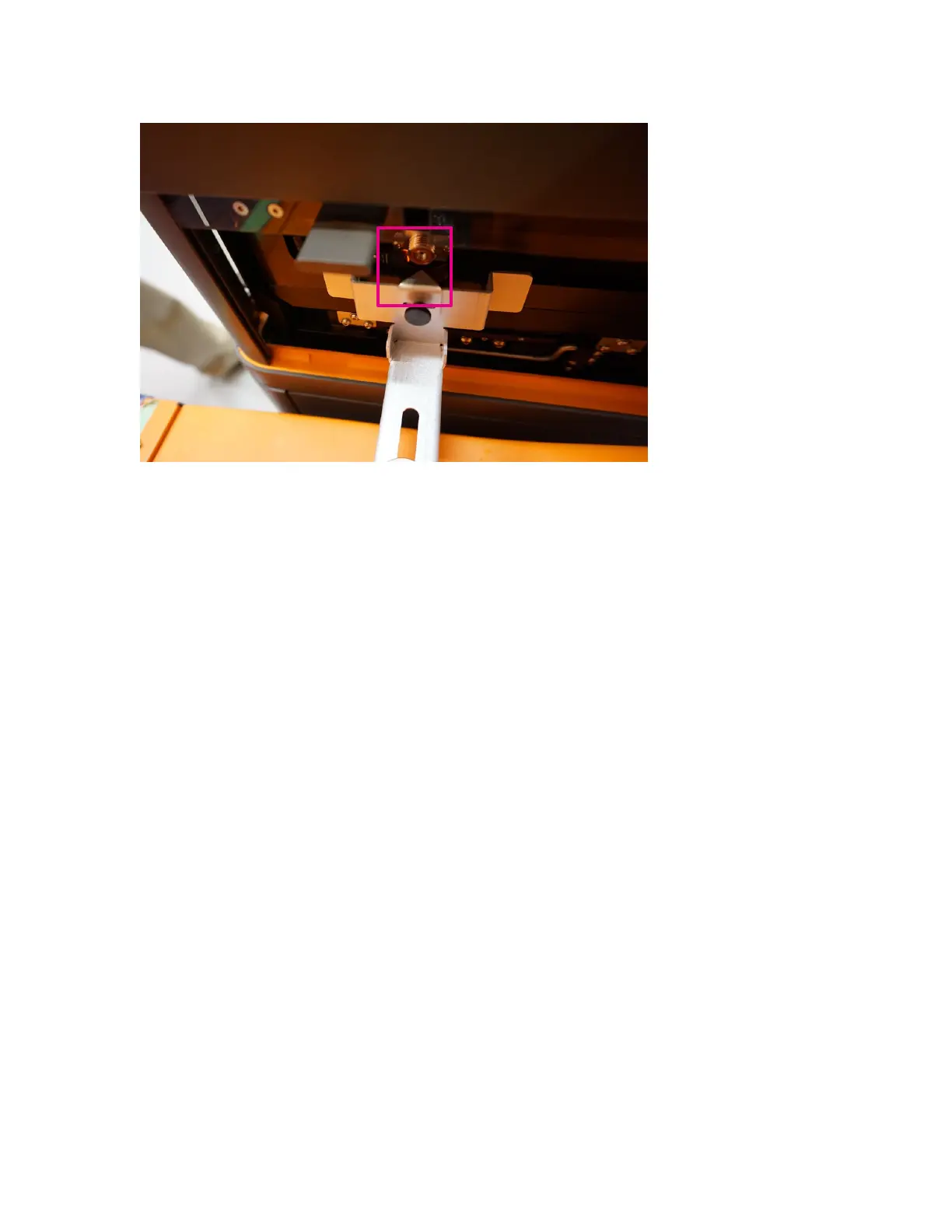 13 With an arm over the top of the Hyperion Tissue Imager, press down on the wheel