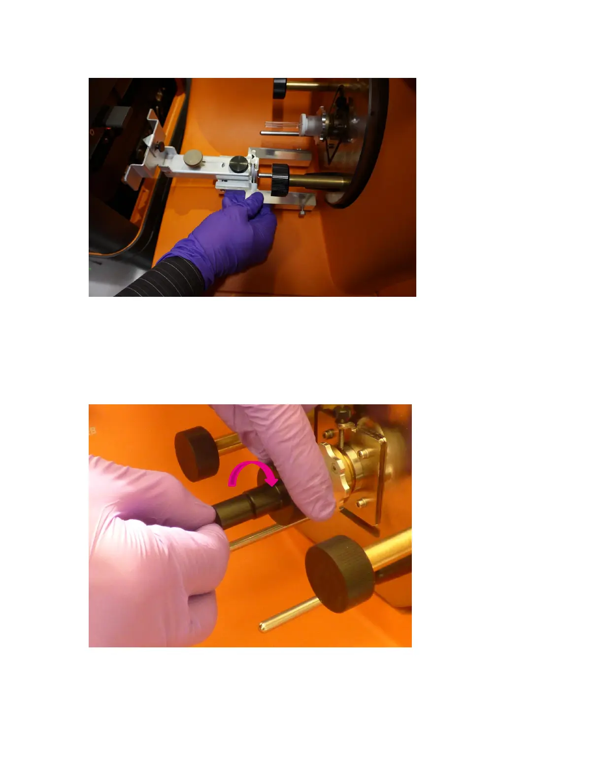 17 Slide the Injector fitting over the back end of the injector in Helios. Grip the back nut