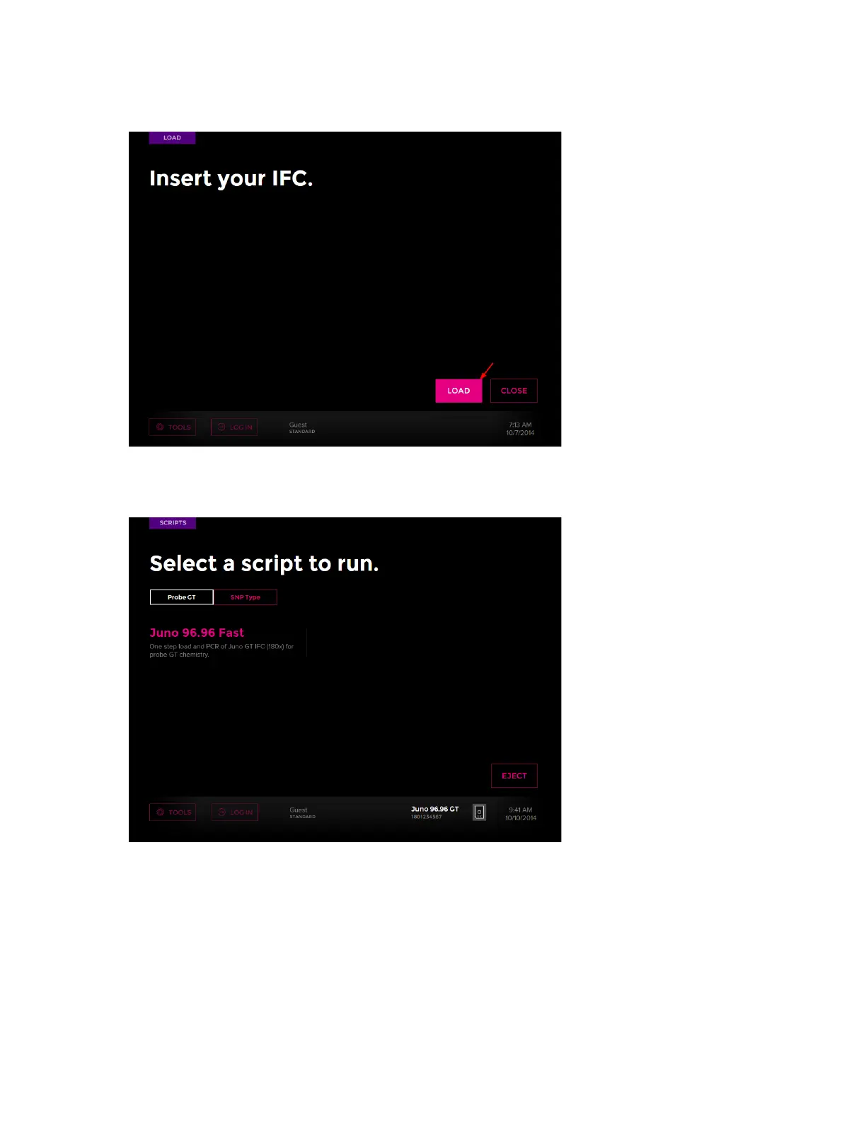 • If the interface plate is incorrect for the IFC being loaded, a Load Error screen displays.