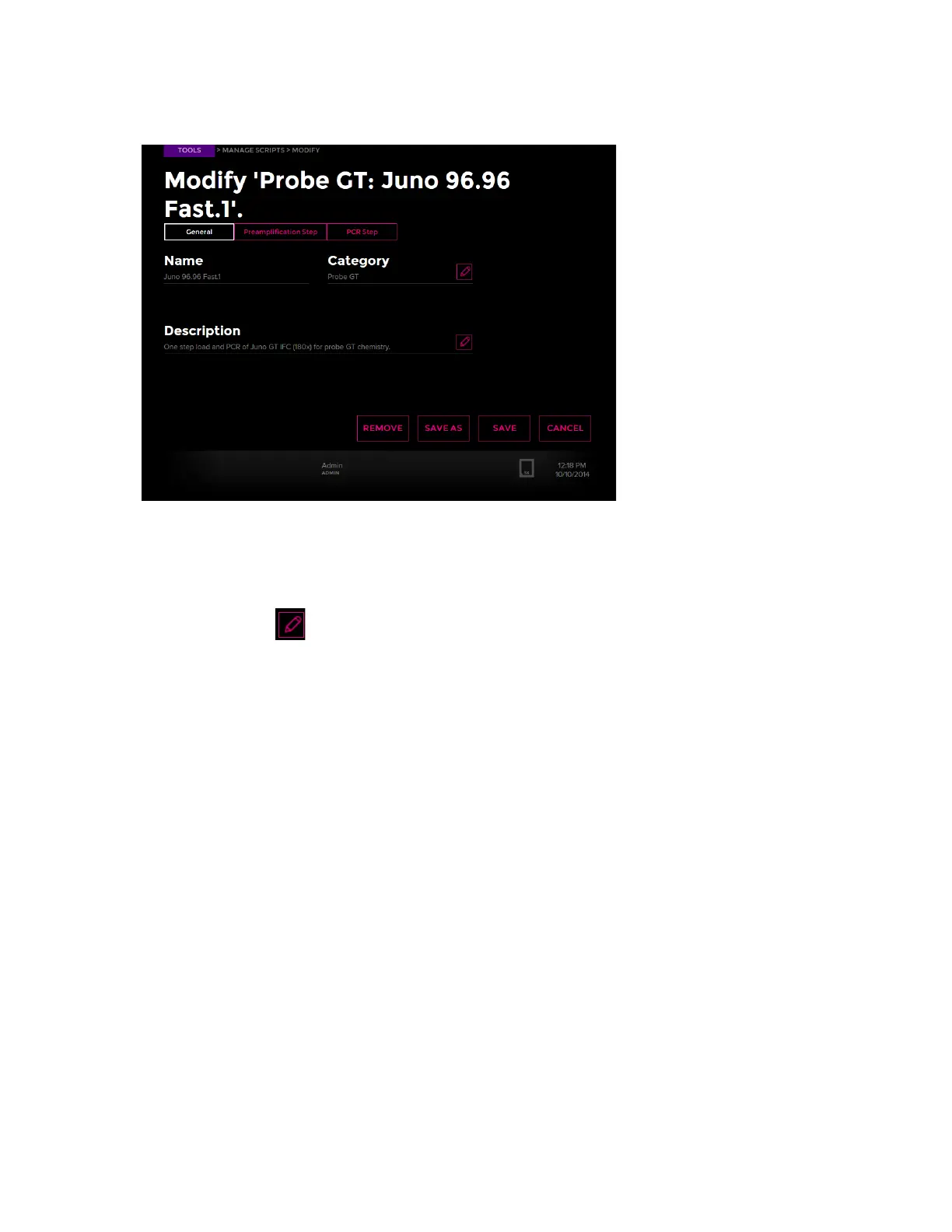 1 On the Modify screen, tap the saved script to modify. (See To View the Scripts to Modify