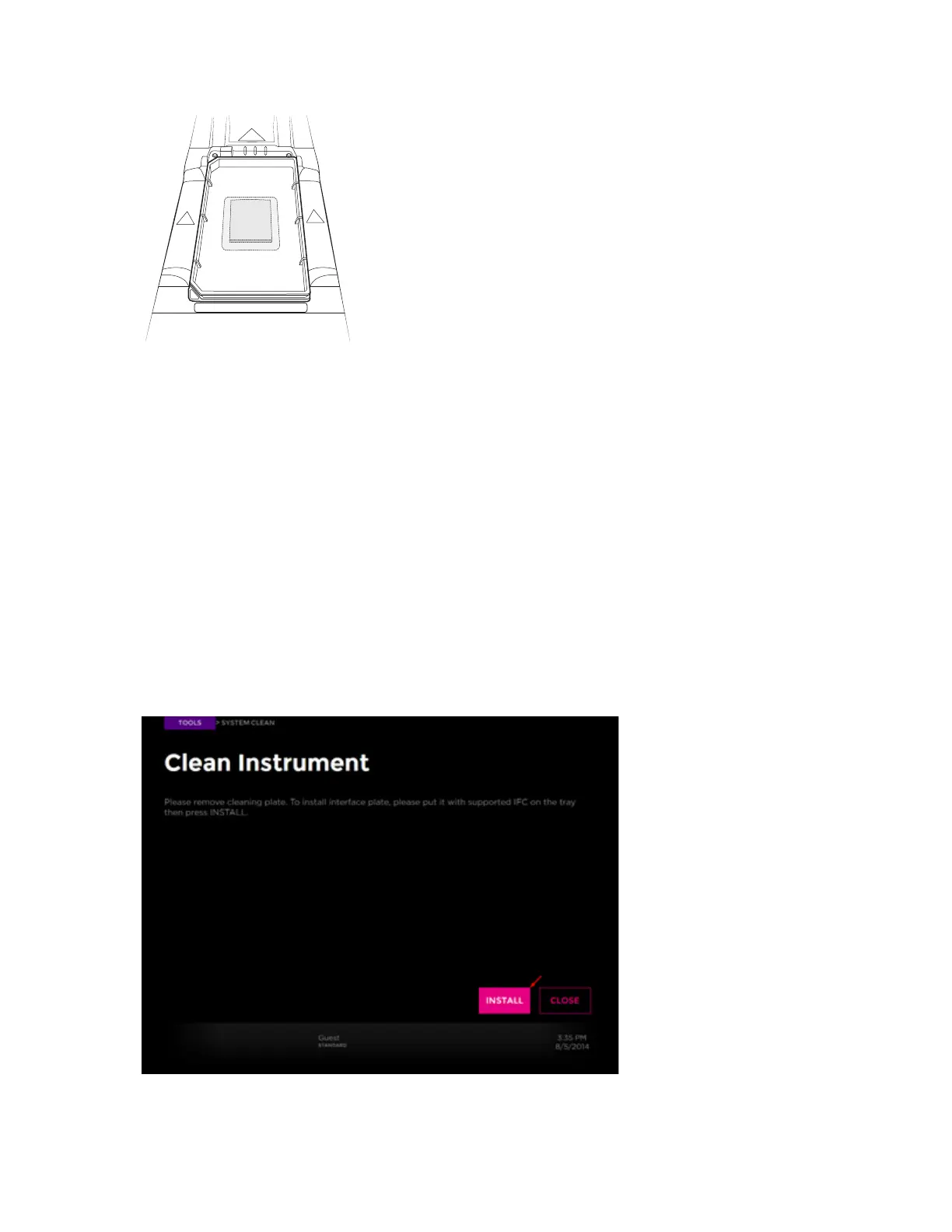 7 Tap RUN and then CONFIRM. The instrument begins system cleaning, and the Running