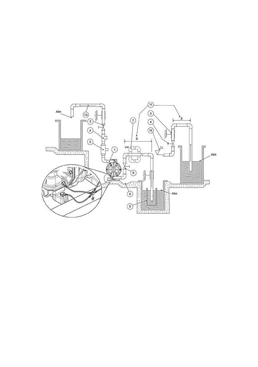 • if the pump is made from conductive materials and is suitable for flammable products, each pump casing must be equipped