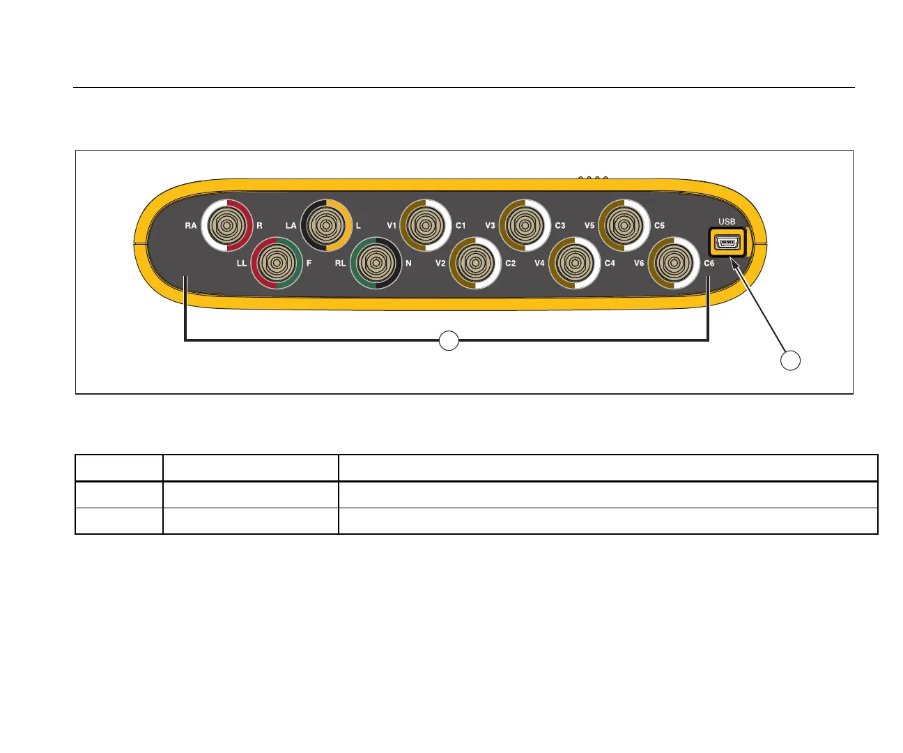 ECG Posts Connection posts for ECG leads from the patient monitor.