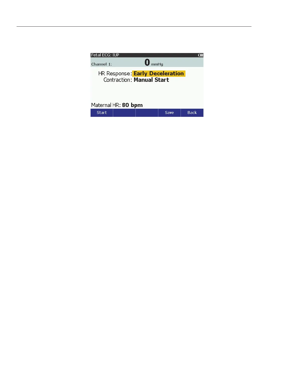 4. Push to set the response value and go back to the Fetal ECG: IUP