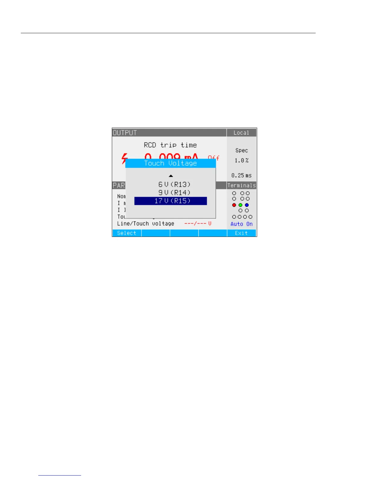 touch voltage values are available. A list of available values can be displayed by