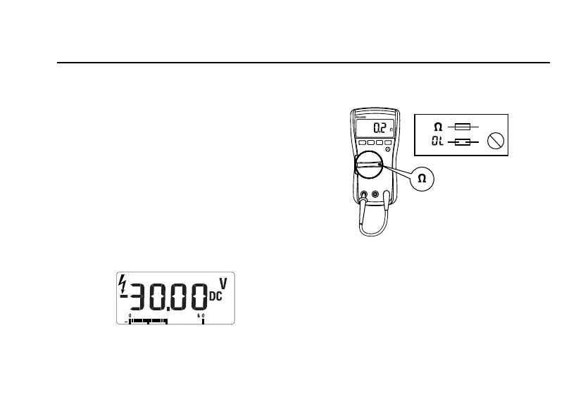 overload indicator () to the right and a polarity indicator () to
