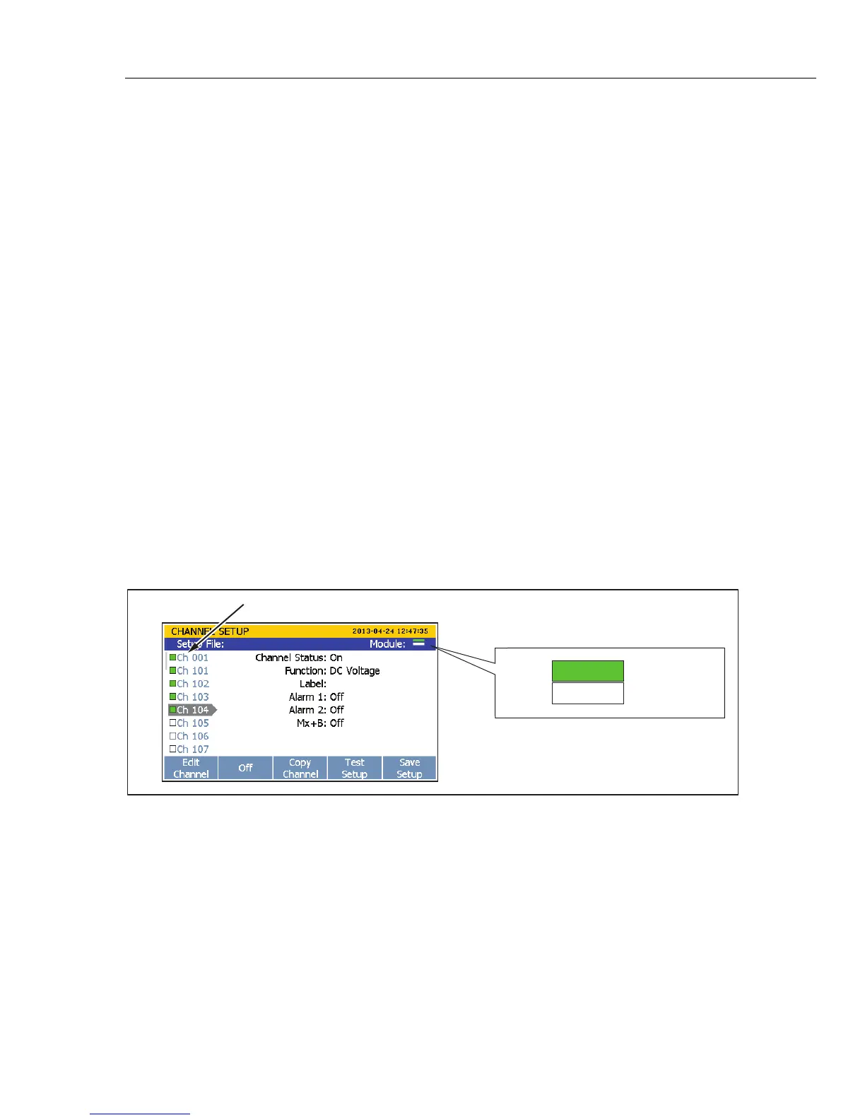 the Channel Setup menu as shown in Figure 3-4. If the module indicator does not