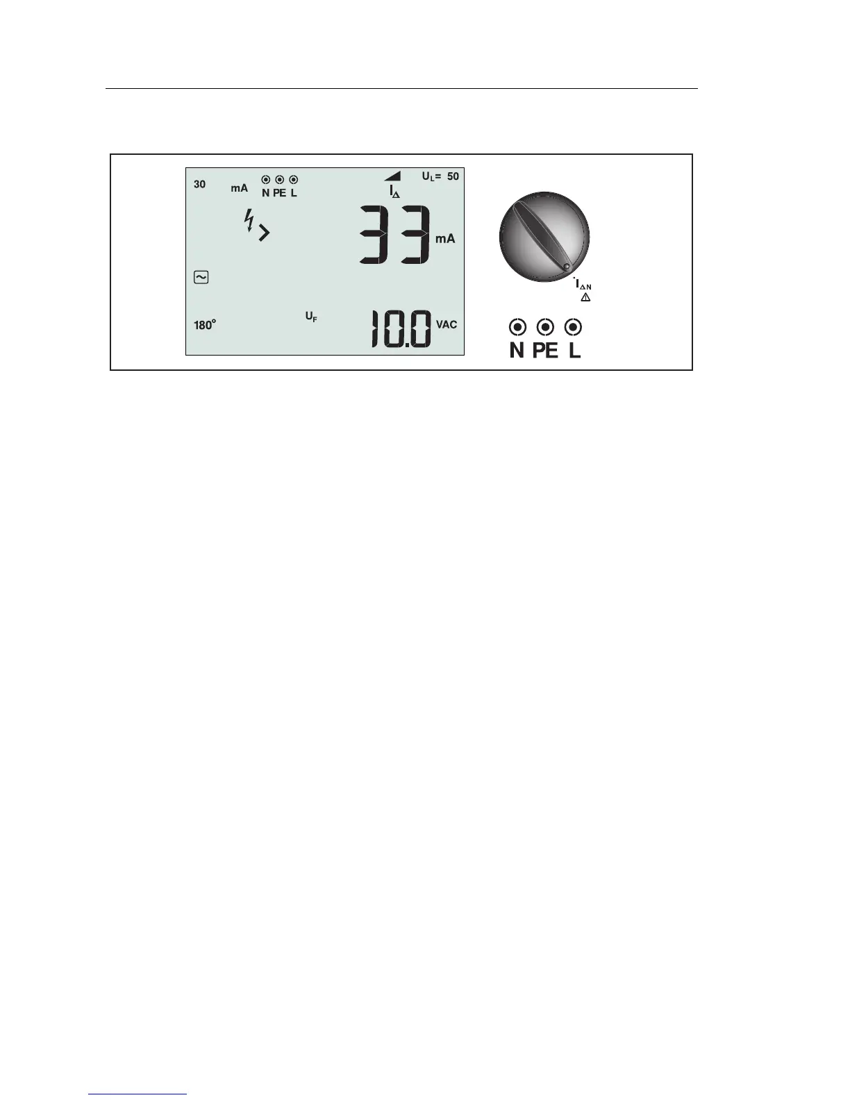 2. Press to select the RCD current rating (10, 30, 100, 300, or 500 mA). If