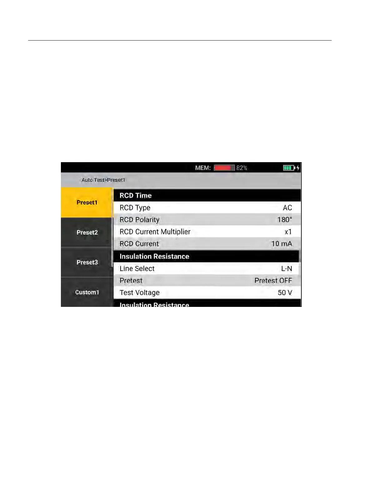 Auto RCD test (type A or type AC, 30 mA, 100 mA)
