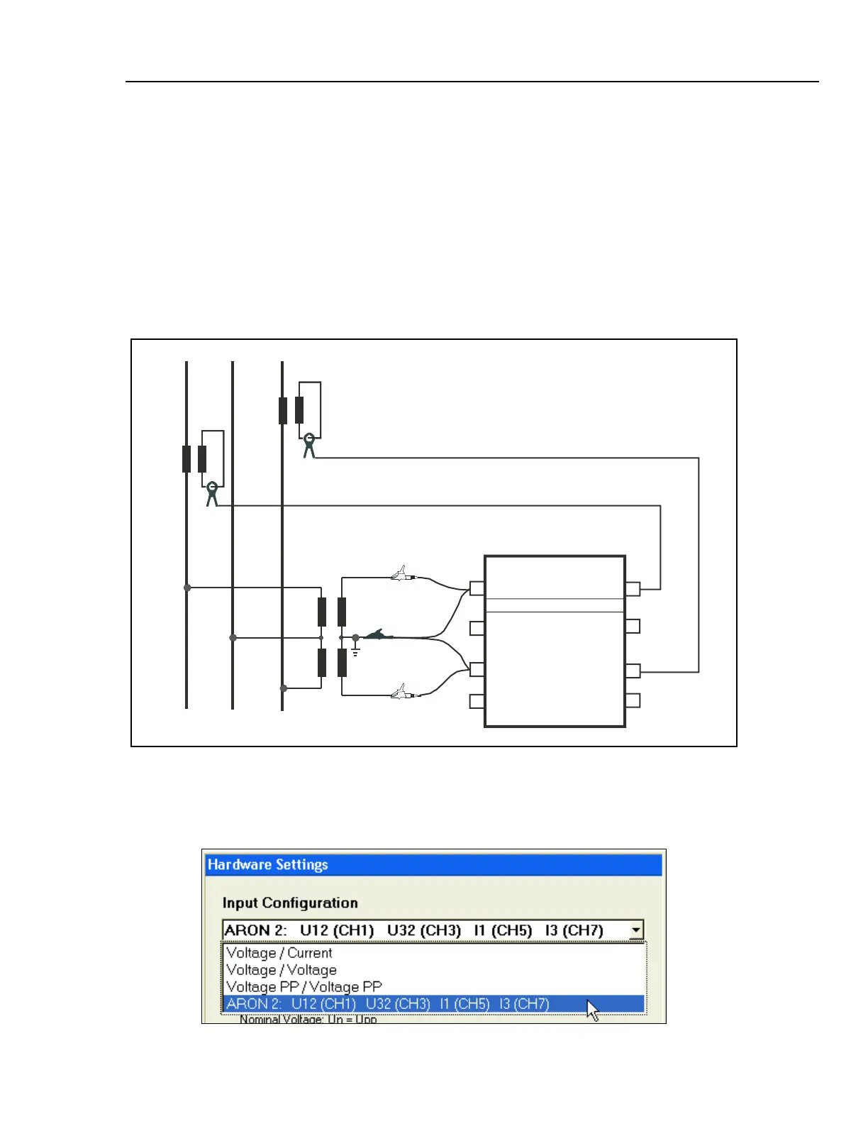 Figure 3-3 shows the circuit diagram for 3-wire network with 2 current sensors (Aron