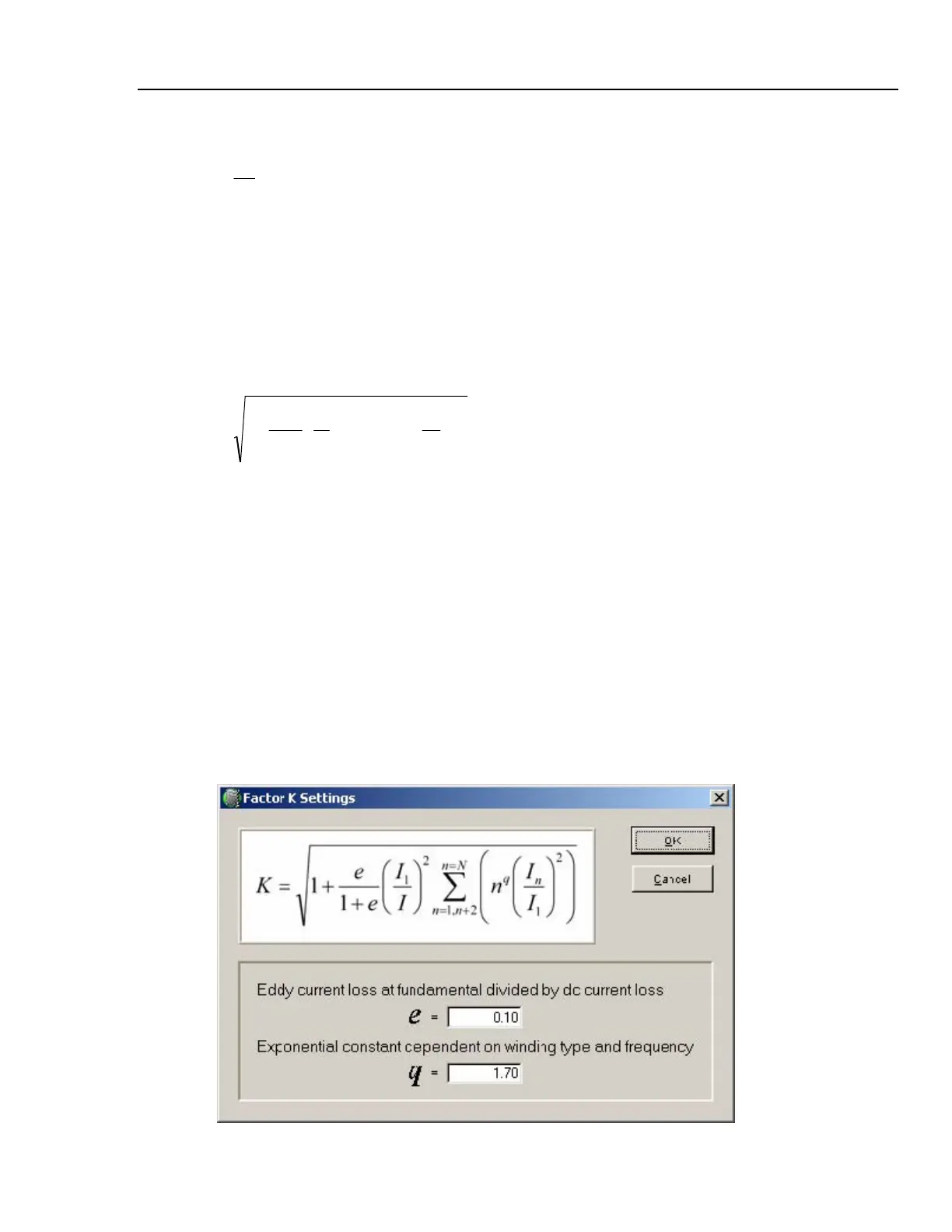 windings and 1.5 for those with foil low voltage windings (to be entered by the user – see