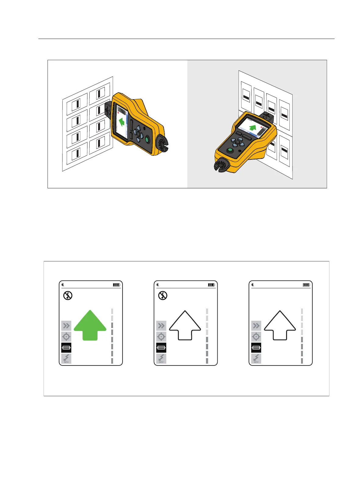 3. Scan each breaker or fuse multiple times until the arrow on the display shows solid green