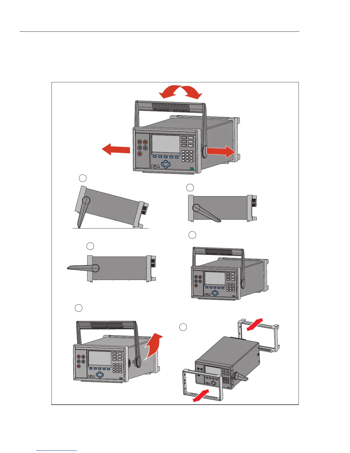 Figure 2-3 shows the various handle positions and also shows how to remove and install
